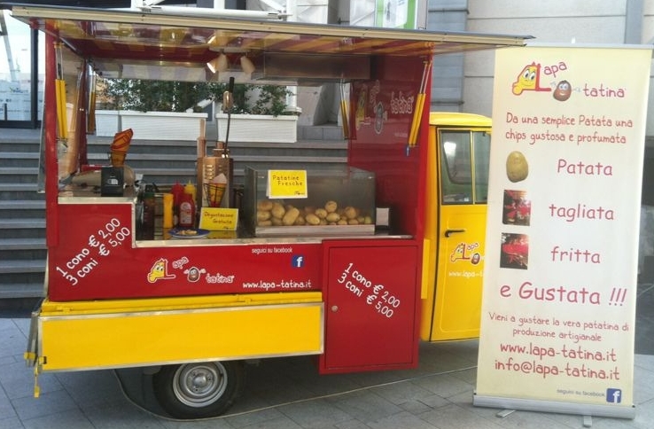 Una moto ape attrezzata di tutto punto per pelare, tagliare e friggere le patate. Si tratta di un vero e proprio ristorante itinerante nato dall’idea di Michele Maggio ...
