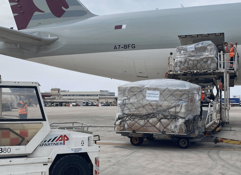 Un nuovo carico di dispositivi di protezione è arrivato in Sicilia. Un Boeing 777F della Qatar Airways Cargo, con a bordo 56 tonnellate di materiale sanitario e accessori medical...