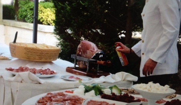 Un cameriere beccato mentre spruzza uno spray per mosche e zanzare sul ricco buffet di un ricevimento nuziale. Una scena incresciosa immortalata da uno dei presenti ...