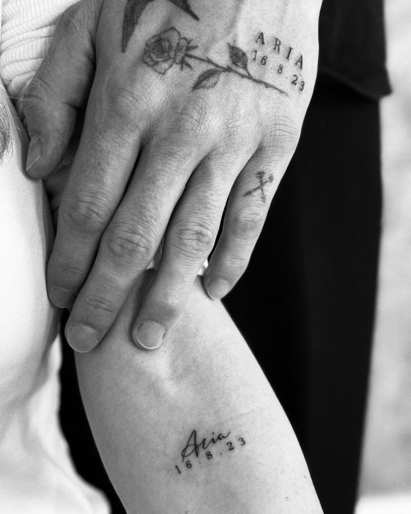 Un tattoo che svelerà poco dopo con un post su Instagram, corredato dalla didascalia “A lot of fun, love and beautiful tattoos in Berlino”, e che raffigura il nome della figlia Aria in caratteri corsivi con sotto la sua data di nascita (16.08.2023), lo stesso giorno di compleanno della conduttrice di Dazn.
