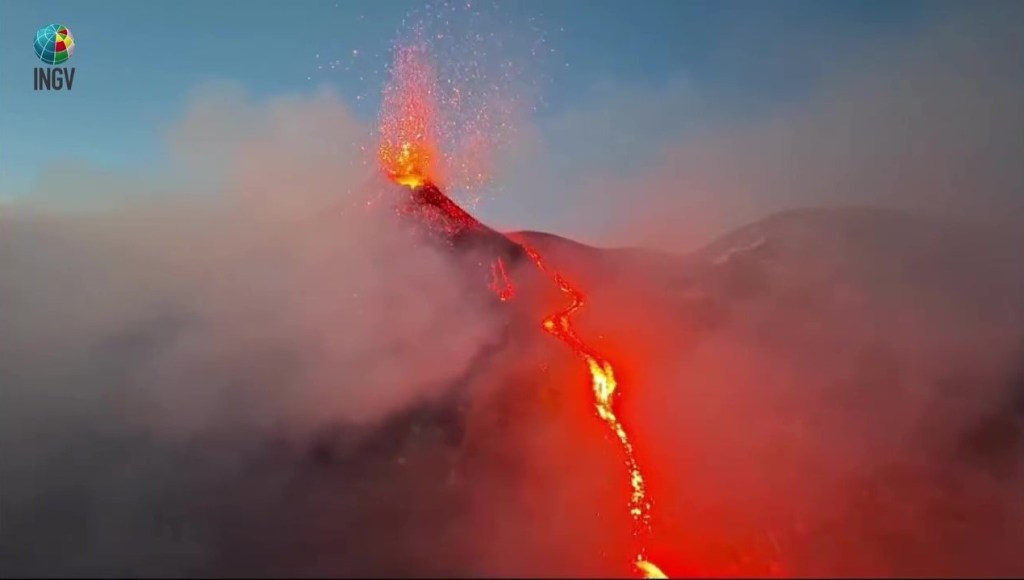 Per quanto riguarda l’Etna, dall’Istituto di Geofisica e Vulcanologia hanno spiegato: “Un’intensa attività stromboliana al cratere Voragine sta costruendo rapidamente un nuovo cono di scorie cresciuto in pochi giorni di diverse decine di metri”. E, ancora: “Inoltre si osserva una colata di lava che esce da una bocca effusiva sul lato orientale di questo nuovo cono e si riversa verso sud nell’adiacente cratere di Bocca Nuova tuffandosi in uno dei pozzi presenti sul fondo di quest’ultimo cratere”.