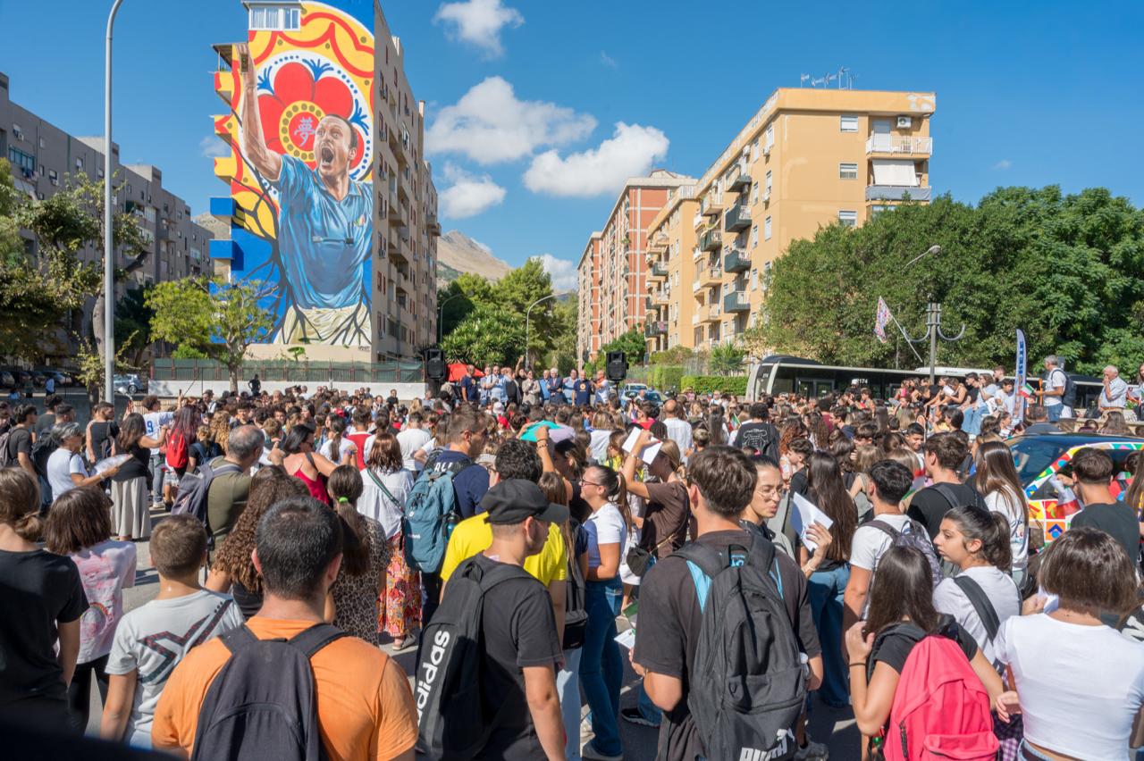 Circa 1000 gli alunni in rappresentanza delle scuole della circoscrizione, evento organizzato dal presidente della V Circoscrizione Andrea Aiello che ha specificato che “Il significato simbolico di Totò va ben oltre il calcio ma è testimonianza importante per le prossime generazioni, un simbolo che invita all’impegno ed al sacrificio. Per noi significa accendere una luce in una delle zone dimenticate di Palermo. Siamo certi che con questo intervento ripartirà una significativa riqualificazione dell’area”.