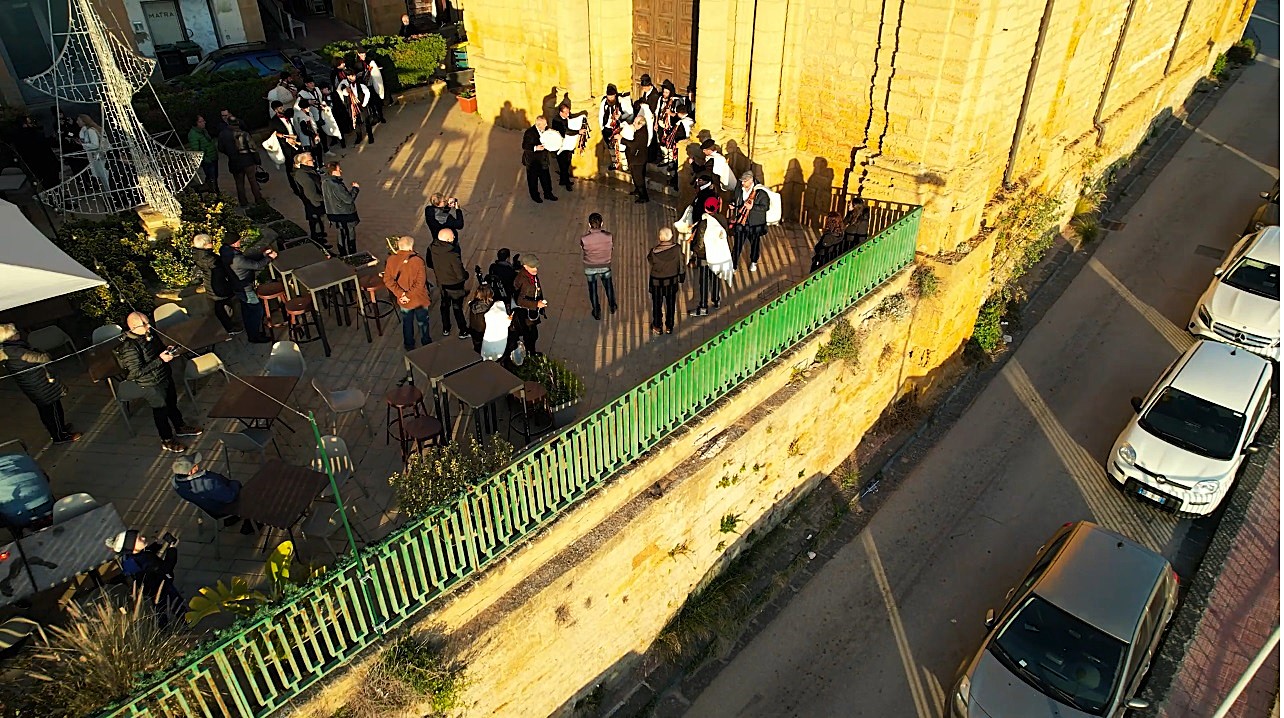 c- Una ripresa con il drone degli zampognari nel centro cittadino